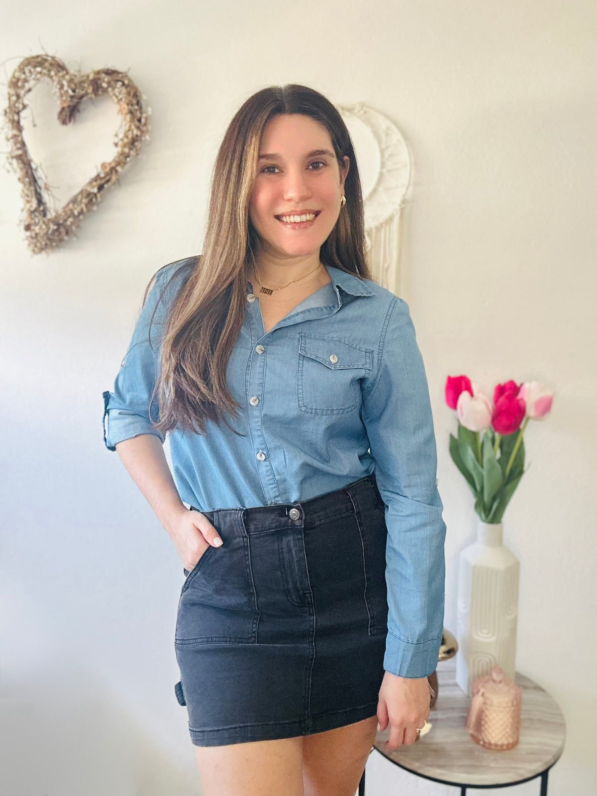 Introducing our High Rise Washed Black Cargo Denim Mini Skirt—an essential piece for the modern wardrobe. Crafted with comfort and style in mind, this skirt boasts a high-rise silhouette that flatters the figure and elongates the legs. The washed black denim lends a worn-in, vintage vibe, while the cargo pockets add a touch of functionality and edge. Perfect for days when you want to effortlessly blend comfort with style, this mini skirt pairs beautifully with a tucked-in blouse or a cozy sweater. Whether you're running errands around town or meeting friends for brunch, this versatile piece will have you looking and feeling your best.